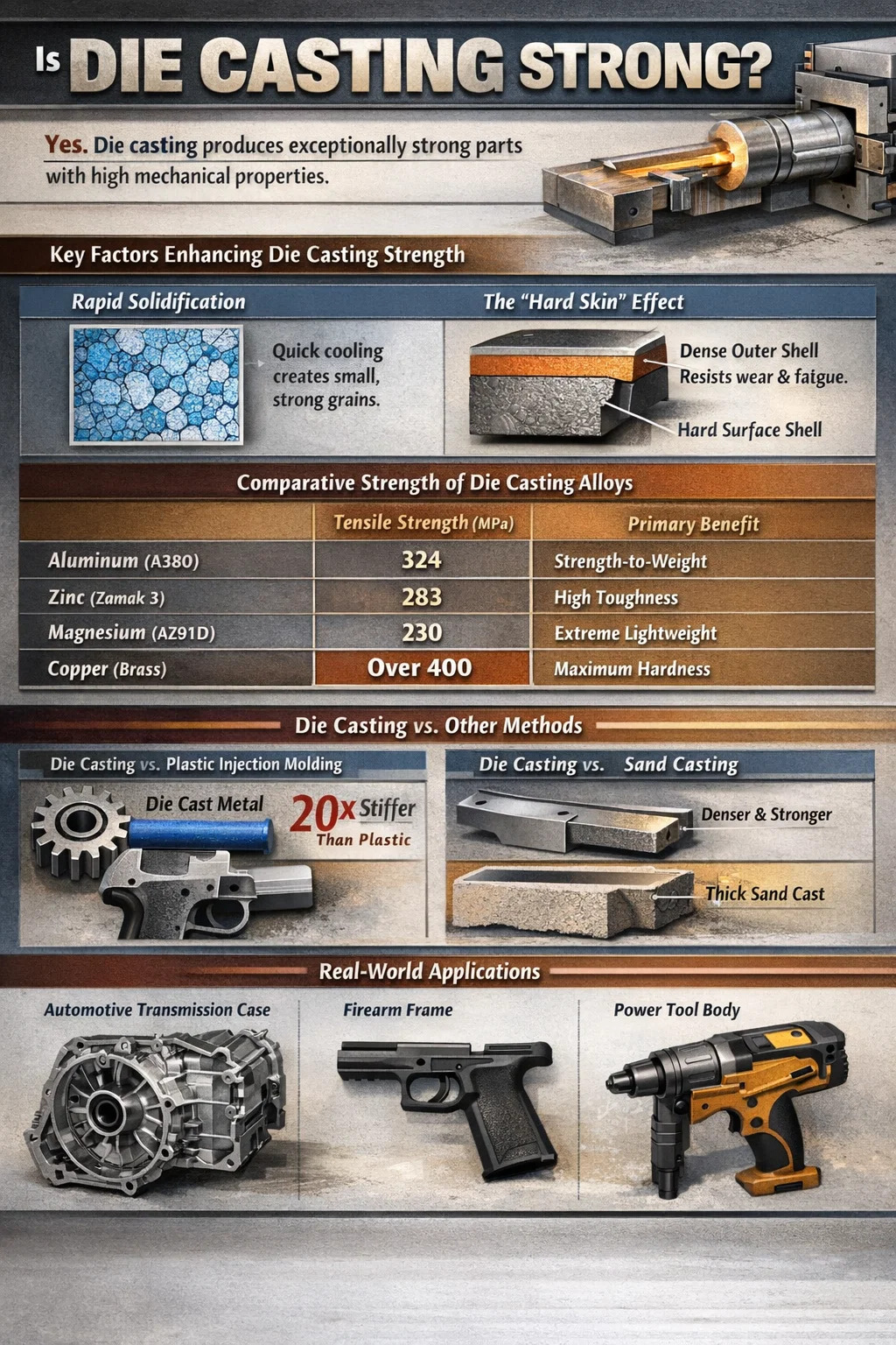 Kun metalli jäätyy kylmää muotin pintaa vasten, ulkokuori tulee paljon tiheämmäksi kuin ydin. Tämä "jäähdytetty iho" toimii kuin luonnollinen vahvistus. Monille painevalu osia, tämä kuori tarjoaa suurimman osan komponentin väsymiskestävyydestä, minkä vuoksi insinöörit välttävät koneistamasta pois liikaa pintaa.