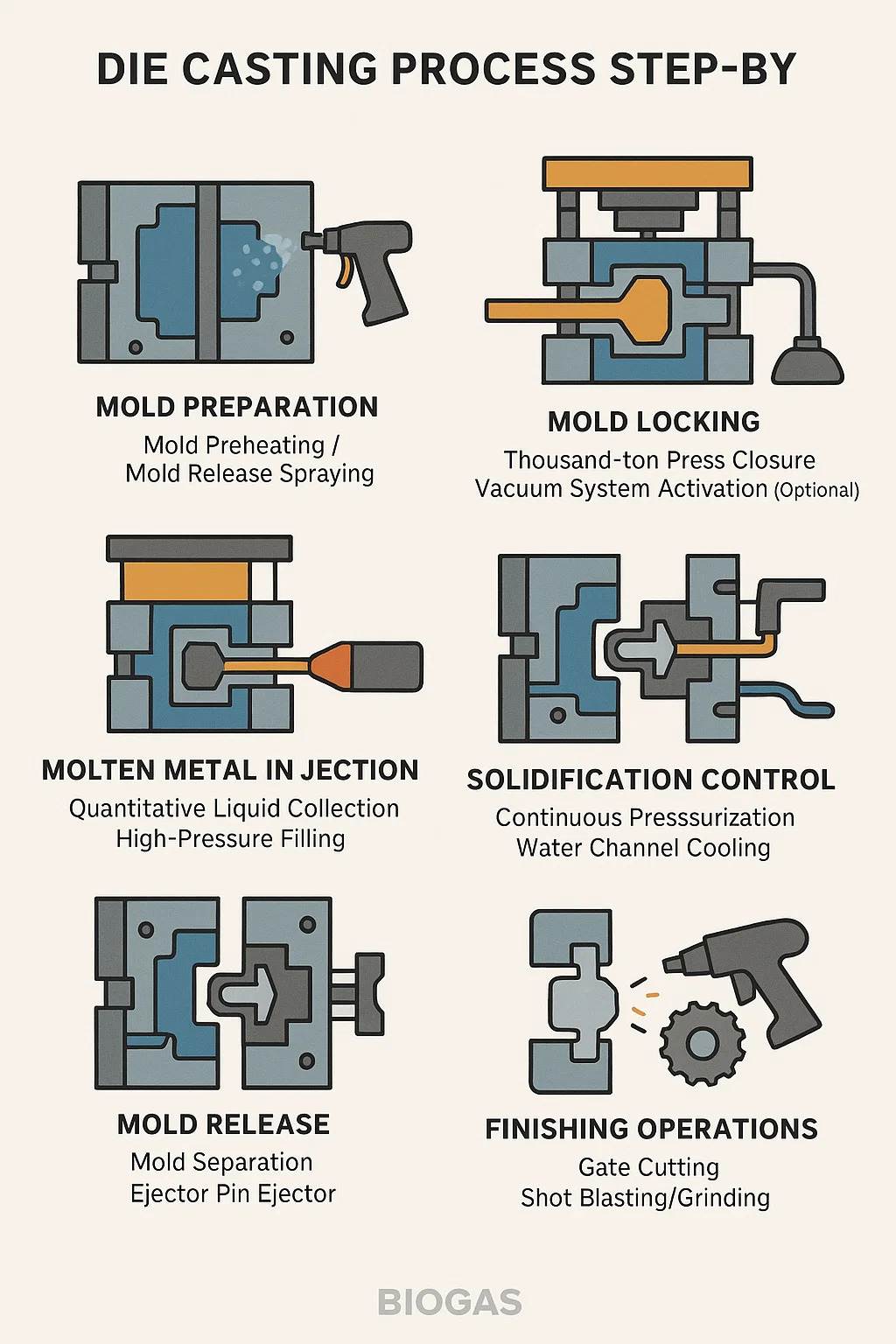 Muotin esilämmitys: Kuumenna teräsmuotti 150-200 ° C: seen estämään sulan alumiinin roiskumisen tai kylmän sulkemisen.