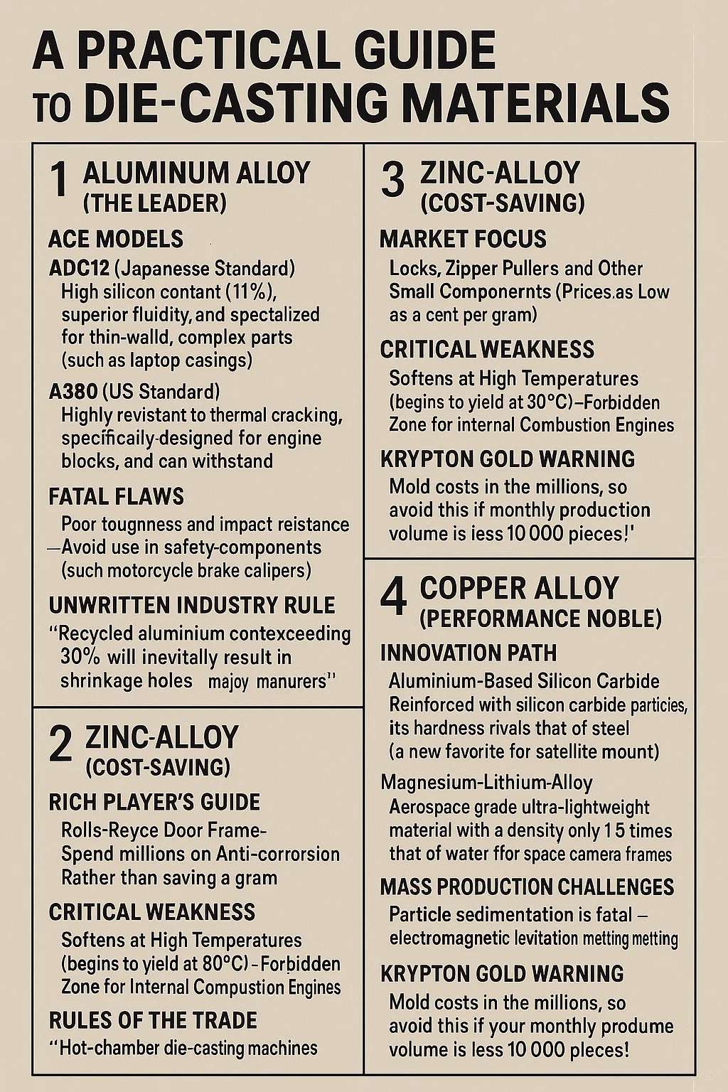 ADC12 (japanilainen standardi): Korkea piipitoisuus (11 %), erinomainen juoksevuus ja erikoistunut ohutseinäisiin, monimutkaisiin osiin (kuten kannettavan tietokoneen koteloihin).